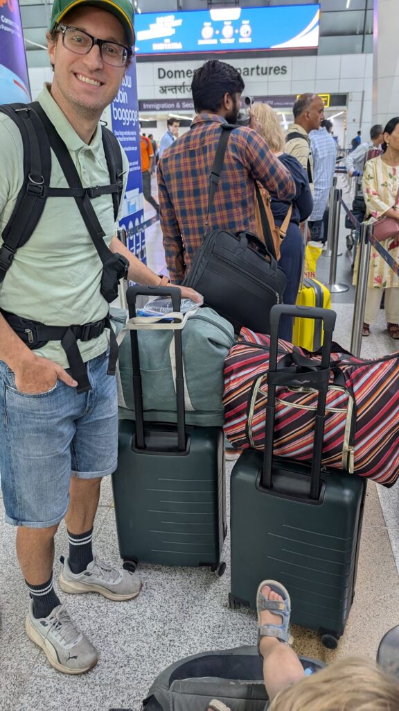 We brought a weekender-sized bag that folds up really small for groceries, laundry, etc., but it’s graduated into our souvenir bag since South Africa (embarrassingly, most our souvenirs are stuffed animals won at claw machines that everyone is very sentimental about). The plan is to send home a box each quarter with that stuff, so we’ll be back down to 3 bags starting next month.
